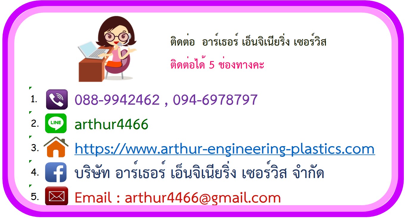 บริษัท อาร์เธอร์ เอ็นจิเนียริ่ง เซอร์วิส จำกัด จำหน่าย พลาสติกวิศวกรรม เช่น ไนล่อน 6 Superlene (ซุปเปอร์ลีน) POM (ปอม) MC Nylon (MC ไนล่อน) Cast Nylon (คาสต์ ไนล่อน) และพลาสติกวิศวกรรม (Engineering Plastics) อื่นๆ ทั้งแบบแผ่น แท่งและท่อ แผ่นเบกาไลท์ แผ่นเบกเกอร์ไลท์ แผ่นแบกกาไลท์ แผ่นแบคกาไลท์ แมกกาไลท์ แผ่นBakelite และรับผลิตชิ้นส่วนต่างๆตามแบบ ให้บริการ ในพื้นที่ จังหวัด ชลบุรี ระยอง ฉะเชิงเทรา และพื้นที่ใกล้เคียง